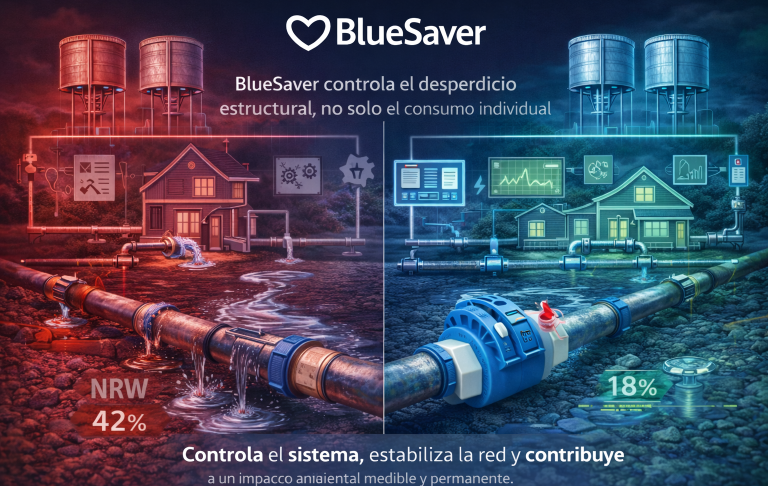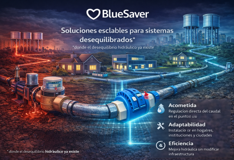 Desde su diseño, BlueSaver fue desarrollado para actuar sobre una de las principales causas del desperdicio de agua en redes de distribución: el consumo desproporcionado generado por exceso de presión y falta de control en el punto de uso.